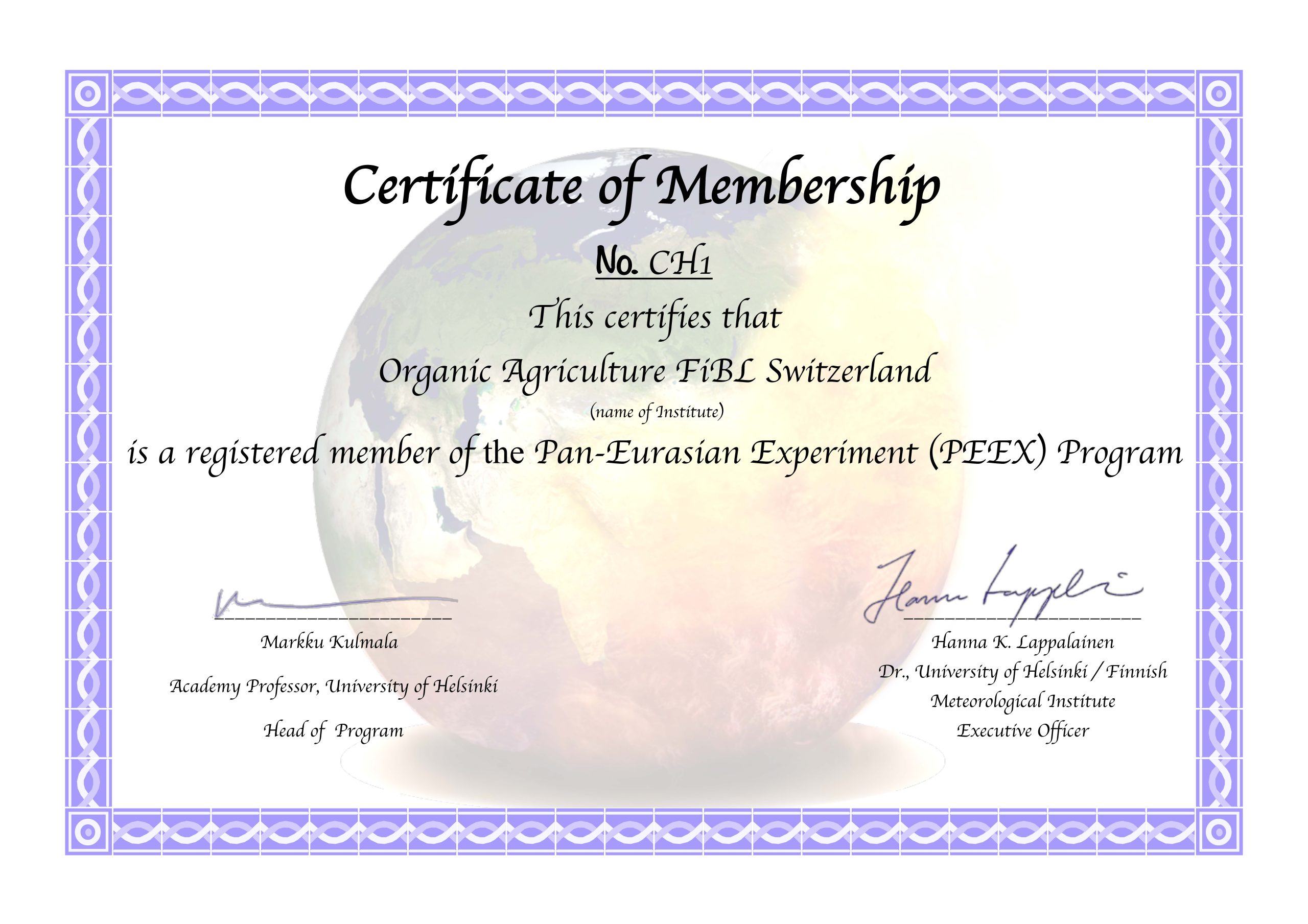 The new Memorandum of Understanding was signed with the Research Institute of Organic Agriculture FiBL, Switzerland The MoU is a bilateral document to encourage the development of the PEEX program in Pan-Eurasia and China regions.