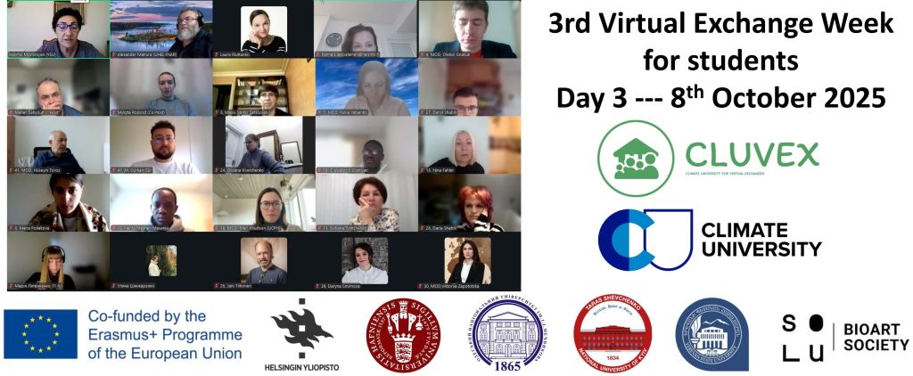 The 3rd day, 8th October 2025, of the CLUVEX 3rd Virtual Exchange (VE) Week successfully continued. The VE Week is hosted by Maher Sahyoun from the University of Copenhagen (UCPH), Denmark and Yulian Braychevskyy from the Taras Shevchenko National University of Kyiv (TSNUK), Ukraine.