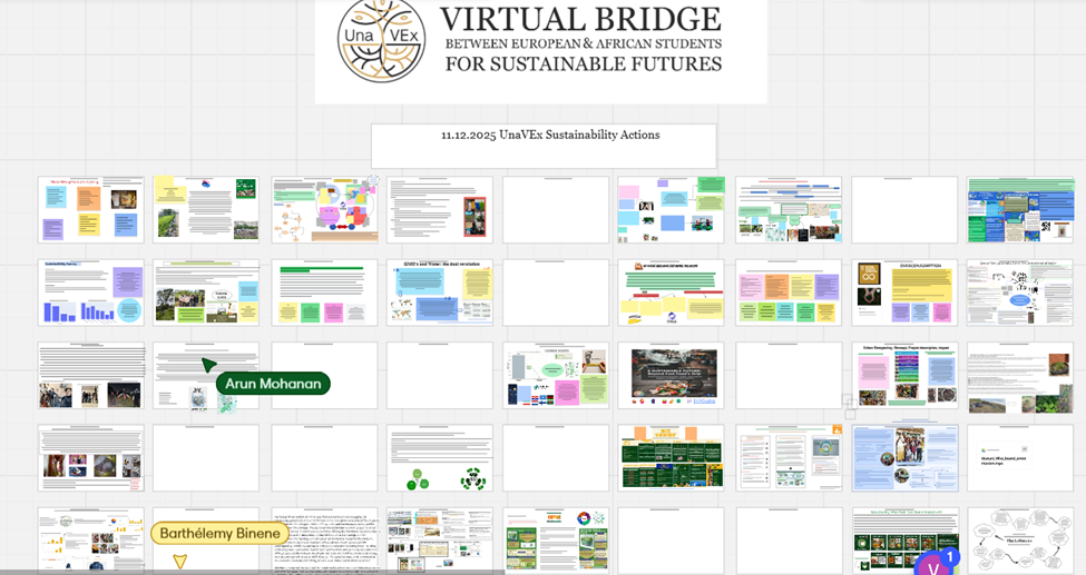 At the end of the UnaVEx virtual exchange, we heard from our students about the sustainability action group work they had been preparing in the previous weeks. The works, summarized on an interactive Miro board, showed great innovation, versatility, and dedication to advancing sustainability both locally and globally.